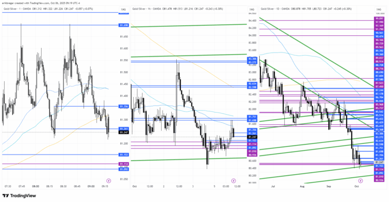 A strong start to the week for the precious metals overnight, thanks to an explosive +4.75% gap-up opening for the CME-listed Nikkei futures following the election of dovish-policy-leaning Sanae Takaichi as Japan’s new LDP leader / prime minister.  This rampant display of risk-taking lifted gold & silver for most of illiquid Asian trade (day 6 of the Chinese Golden Week holidays), after which we began to consolidate in Europe with sharp declines for EURUSD & the CAC40 following negative French political developments.  Early NY trade saw algo selling out of the COMEX opening ranges for the precious metals as the S&P futures turned lower again, however a pop for palladium to new session highs (+2.9%) has now seen platinum reverse strongly back above its COMEX range…and is encouraging gold & silver to do the same.  Up next are equity flows out of the S&P cash open; the next barometer for the overall risk mood in an otherwise very quiet calendar because of the continued US government shutdown.  Euro/dollar and France’s CAC40 stock index continue to recover ahead of this.This material is provided strictly for informational purposes and should not be construed as investment, legal, tax, or financial advice. Precious metals and other investments involve risk and may not be suitable for all investors. Past performance is not a guarantee of future results, and market conditions can change without notice. The information presented is believed to be reliable; however, no representation or warranty, express or implied, is made as to its accuracy, completeness, or timeliness. No liability will be accepted for any loss or damages arising from the use of, or reliance on, this material. This publication does not constitute an offer, solicitation, or recommendation to buy or sell any product, security, or investment strategy. Readers should consult with independent financial, legal, tax, and other professional advisors before making investment decisions. All product names, trademarks, and company names mentioned are the property of their respective owners. Reference to them does not imply endorsement.
