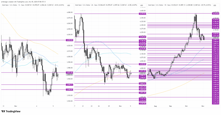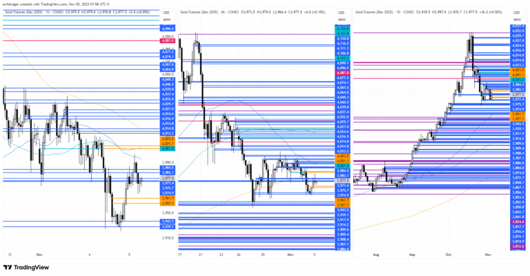A strong overnight session as expected for the precious metals, thanks to yesterday’s “bullish piercing line” NY closing patterns on the daily charts, another round of Chinese buying last night, and continued USD selling following yesterday’s rally exhaustion signals. The big extensions higher for gold & silver during late Asian / early European trade felt palladium driven once again, but these gains have now largely vanished as the automotive metal collapses 3% off session highs and as bearish algos attack gold at 7:03amET and 9:00amET. I’m a little surprised that the 4amET release of a shockingly bad October US Challenger Job Cuts number (+175.30 YoY vs -25.8% YoY for September) hasn’t done more to help gold, because US yields have been a clear downward path since then. Not even Goolsbee’s pathetic attempt to shill for Powell’s December rate-cut pushback worked to stop the bond market buying in early NY trade this morning. All to say I think this 9amET hourly selloff for the precious metals is a bit overdone now; it looks like we stopped out everybody who went long on the breakout in late Asian / early European trade, and we now have room again to work higher with this fundamentally valid bid in bonds.